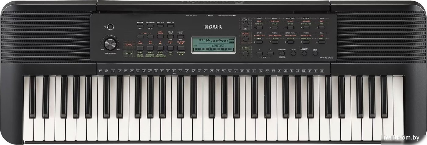 | Информация | Get in on the excitement and fun! Yamaha's entry keyboard for beginners motivates and entertains you at the same time—taking your playing to a higher level. This digital keyboard - The Yamaha PSR-E283 gives you all the tools to enjoy and practice, even for the first time, with 410 authentic instrument Voices, fun sound effects, and stimulating Lesson functions including a Quiz Mode. In addition to many beautiful Piano sounds, this keyboard has a variety of realistic instrument Voices, including Guitar & Bass, Percussion & Drums, and even entertaining sound effects, including barking dogs and meowing cats. Choose your favorite Voices when you play or practice. And enjoy the wonderful expressiveness of Yamaha's Grand Piano Voice—built into the keyboard! |