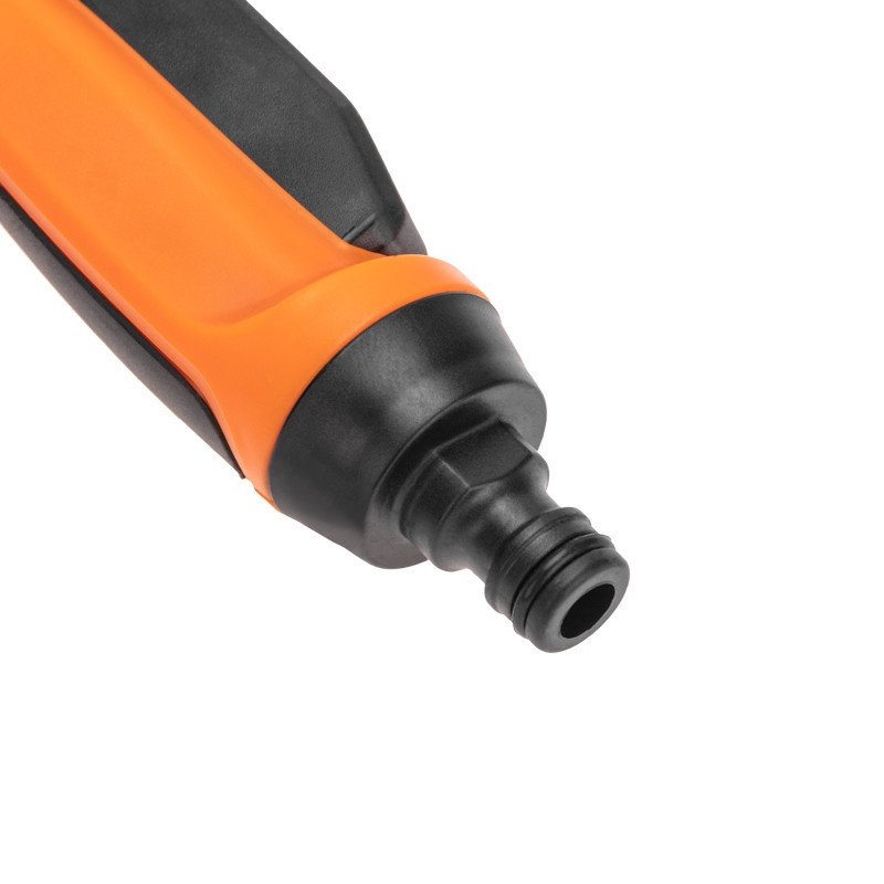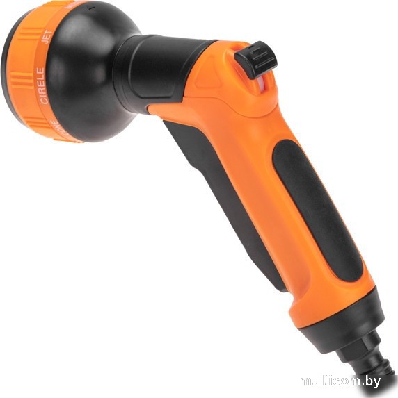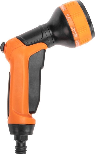 | Информация | - Пистолет-распылитель для полива растений и почвы. - Эргономичная прорезиненная ручка для комфортного удержания. - 7 режимов подачи воды, регулируемых поворотной головкой. - Легко нажимаемый курок для удобного полива. - Регулировка давления для адаптации подачи воды. - Надежное и герметичное крепление к шлангу. |