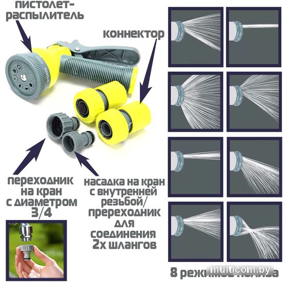 Распылитель Inbloom Пистолет-распылитель 8 режимов 2 коннектора 3/4 (зеленый/желтый)
