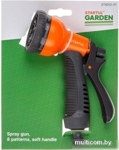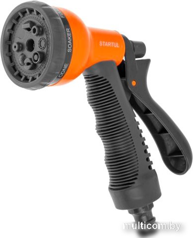 | Информация | ? Назначение предназначен для полива на дачных участках, в садах, парках и скверах. ? Противоскользящее покрытие ручки. ? Фиксирующий курок для длительных режимов полива. ?? Режимы полива: центральная струя; плоская струя; широкое распыление; жёсткая струя; душ; мелкодисперсное распыление туман; конусное распыление; широкая струя ? Материал: АБС-пластик, полипропилен, термопластичная резина |