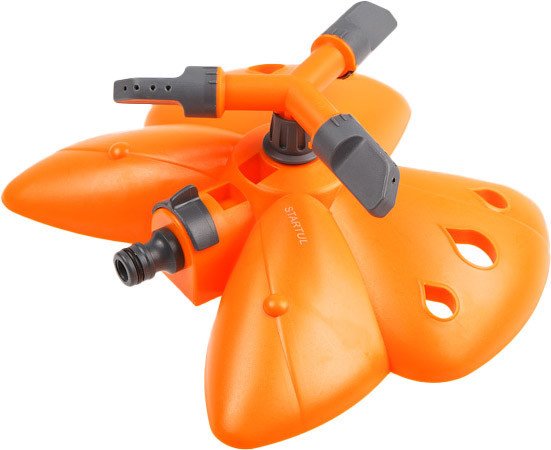| Информация | Распылитель на устойчивой подставке в форме "бабочки", применяется для стационарного полива растений. С помощью соединителя подключается к шлангу. Площадь полива регулируется поворотом сопел. |