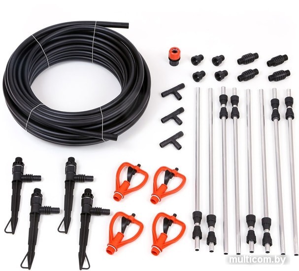 | Информация | Комплект предназначен для организации орошения участка площадью до 100 м. кв. Рабочее давление от 1,5 атм. до 3 атм. Радиус полива одного распылителя от 1м до 3м (в зависимости от давления в системе и высоты распылителя). Температура использования от +5С до + 40С.Комплектация набора:1. Шланг магистральный ? - 20 метров.2. Цанговый зажим ? - 1 шт.3. Распылитель – 4 шт.4. Гайка распылителя - 4 шт.5. Соединительная муфта – 4 шт.6. Алюминиевый удлинитель – 8шт.7. Ножка распылителя – 4шт.8. Тройник ? - 3 шт.Для продления срока службы системы полива производитель рекомендует использовать – фильтр для полива «Жук». |