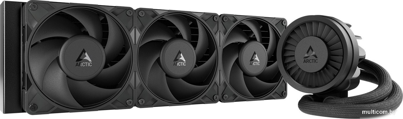 | Информация | - ARCTIC Liquid Freezer III Pro 360 - это высокопроизводительная система жидкостного охлаждения процессора с радиатором длиной 398 мм и тремя вентиляторами P12 Pro диаметром 120 мм. Новая версия комплектуется усовершенствованным радиатором толщиной 38 мм, что обеспечивает эффективное охлаждение даже в условиях высоких тепловых нагрузок. - В конструкции используется интегрированный вентилятор для охлаждения VRM, который способствует стабильной работе системы и продлевает срок службы компонентов. Смещенное крепление водоблока обеспечивает оптимальный контакт с горячей зоной процессора, а медная пластина с микроскребками эффективно отводит тепло. - Все вентиляторы построены на надежных гидродинамических подшипниках и поддерживают ШИМ-регулировку скорости (600 - 3000 об/мин), что позволяет автоматически подстраивать производительность под текущую нагрузку и минимизировать шум. Встроенная кабель-менеджмент система упрощает установку и убирает лишние провода из корпуса. - Данная СЖО совместима с современными сокетами Intel LGA1851, LGA1700 и AMD AM5, AM4. Усиленные EPDM-трубки длиной 45 см с оплёткой гарантируют долговечность, а увеличенный объём жидкости внутри системы способствует снижению скачков температуры при внезапных нагрузках. |