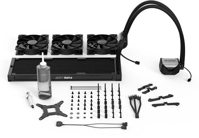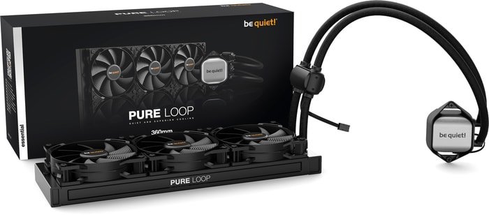 | Информация | Pure Loop 360mm - это новая бесшумная и эффективная готовая система водяного охлаждения be quiet! для пользователей умеренно разогнанных систем.• Двойное изолирование помпы для минимальных вибраций• Три вентилятора Pure Wings 2 120mm PWM сочетают тихую работу и высокое давление воздушного потока• Белая LED подсветка и полностью черные поверхности• Возможность добавления жидкости для длительной эксплуатации• Гибкие трубки в оплетке и легкость монтажа обеспечивают удобство использования• Никелированная поверхность теплообменника позволяет использовать жидкий метал |