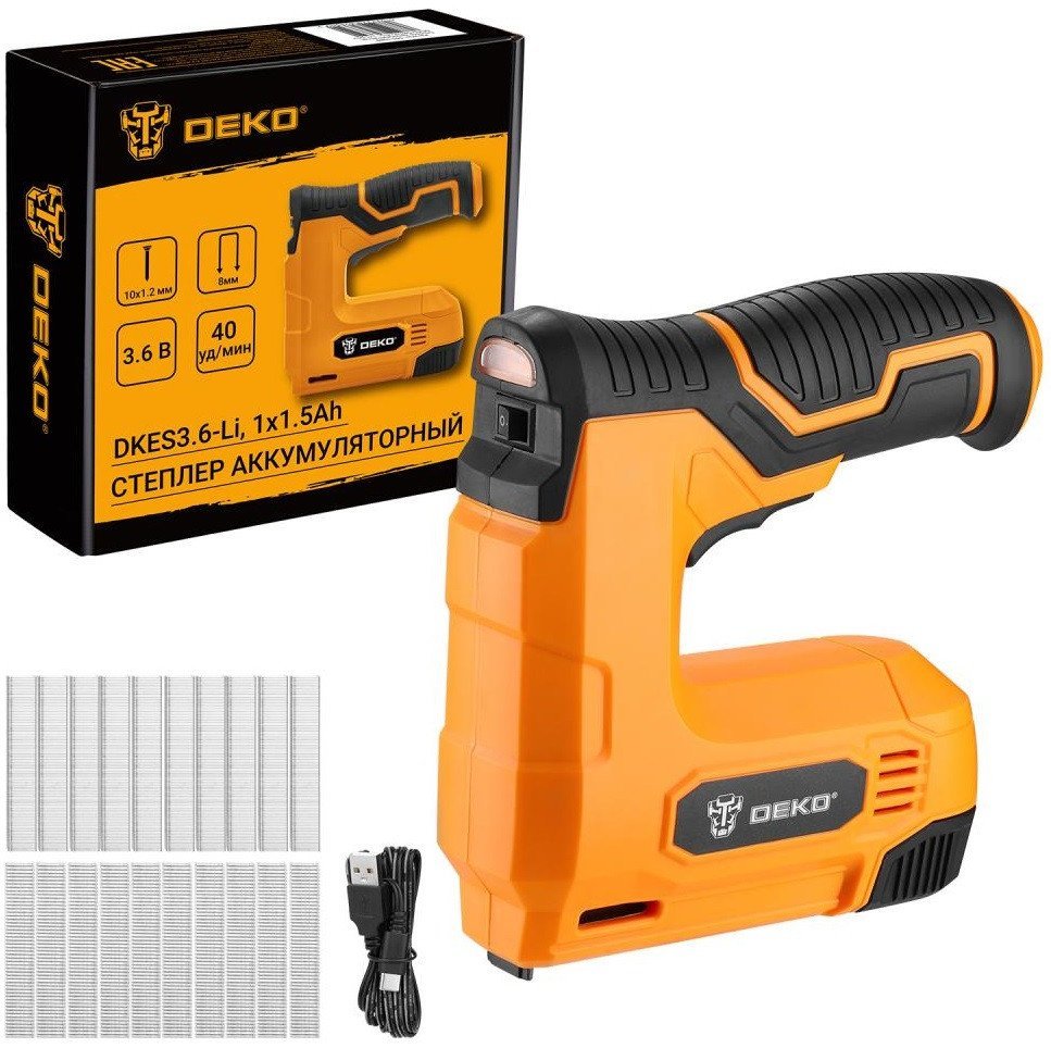 | Комплектация | - Степлер - 1 шт. - U-образные скобы 8мм - 1000 шт. - T-образные гвозди 10х1.2мм - 500 шт. - USB-кабель для зарядки - 1 шт. - Руководство по эксплуатации - Коробка |