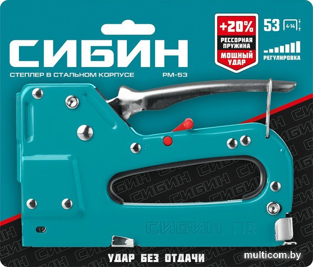 | Информация | Степлер стальной СИБИН РМ-53 31537 с ударным механизмом рессорного типа, предназначен для крепления различных материалов с помощью скоб. Стальной хромированный корпус, двухпозиционная регулировка силы удара, боек из закаленной инструментальной стали. |