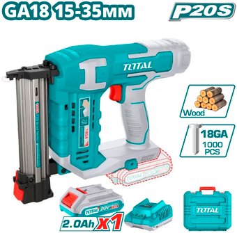 | Комплектация | - Гвоздезабивной пистолет - 1 шт. - Аккумулятор TFBLI2001 2,0 Ач - 1 шт. - Зарядное устройство TFCLI2001E - 1 шт. - Гвозди - 1000 шт. - Кейс. |