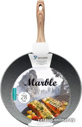 | Информация | Кованая алюминиевая сковорода с «мраморным» антипригарным покрытием. Благодаря большой толщине дна и стенок можно готовить без масла и жира. За счет ковки сковорода имеет малый вес и очень удобна в использовании. Не подходит для индукционных плит. |