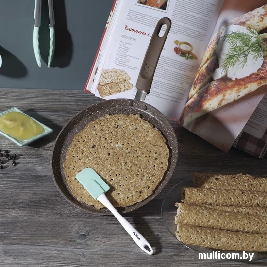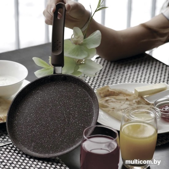 | Информация | Серия SMOKY STONE от компании FISSMAN- это инновационные изделия, выполненные из натуральных экологичных материалов. Алюминий быстро нагревается и равномерно распределяет тепло. За безопасность отвечает сверхпрочное многослойное покрытие PlatinumForte. Именно компания FISSMAN первой начала использовать его для производства своих изделий, сделав ставку на натуральное безопасное сырье. • PlatinumForte - улучшенная версия покрытия Platinum, признанного ведущими экспертами и шеф-поварами. Его показатели в два раза выше, оно в два раза надежнее и прочнее. • Сковороды благородного коричневого оттенка с черными и белыми вкраплениями смотрятся дорого и эстетично. • Покрытие PlatinumForte устойчиво к коррозии и истиранию. Точки разных цветов отвечают за устойчивость к разным видам воздействия, а это значит, что производитель использует слои, защищающие от разных типов повреждений. • За счет использования природных материалов изделия SMOKY STONE безопасны для здоровья и не вредят окружающей среде. • Шероховатая поверхность идеально подходит для приготовления еды с ароматной хрустящей корочкой. • Ручка изготовлена из бакелита – не нагревается, не скользит. • Низкий борт позволяет с лёгкостью переворачивать и снимать блины и оладьи. • Подходят для всех типов плит, включая индукционную. • Безопасны для здоровья, не вредят окружающей среде. |
