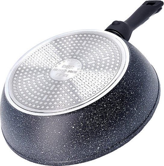 | Информация | Сковорода с мраморной крошкой и съемной ручкой выполнена из качественного штампованного алюминия и снабжена антипригарным покрытием особой прочности. Покрытие антипригарное жаропрочное, защищает сковороду от царапин, является экологически чистым и полностью безопасным, без вредных соединений и примесей. За счет того, что пища не пригорает и не пристает к покрытию сковороды, ее легко и быстро мыть. Прочное индукционное дно сковороды устойчиво к повреждениям и деформации. Эргономичная ручка из бакелита не нагревается и не скользит. Такая сковорода является незаменимой для жарки и тушения различных блюд. |