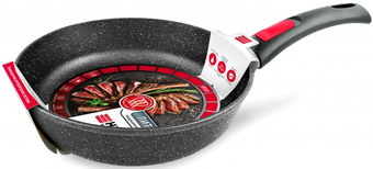 | Информация | Серия сковород «Литая» является классикой: безупречно подходит для ежедневного использования, создана из материалов высшего класса безопасности на новейшем оборудовании. Литой алюминиевый корпус сковороды не подвержен деформации и обеспечивает равномерный нагрев. Многослойное антипригарное покрытие c эффектом натурального камня позволяет готовить с минимальным количеством масла и сохранять натуральный вкус продуктов. Антипригарное покрытие на водно-кремниевой основе безопасно, не содержит PFOA (перфтороктановой кислоты). Эта сковорода выполнена с использованием современной технологии «Full Induction», дно сковороды оснащено цельным ферромагнитным диском, который распознается всеми типами индукционных плит и обеспечивает быстрый разогрев сковороды до идеальной температуры для жарки. Сковорода многофункциональна, обеспечивает комфорт и легкость в использовании. Форма сковороды идеально подходит для большинства рецептов. Благодаря высоким бортам и большой полезной площади дна, сковорода отлично подходит для приготовления таких блюд как котлеты, шницели, тефтели, голубцы, жаркое, гуляш. |