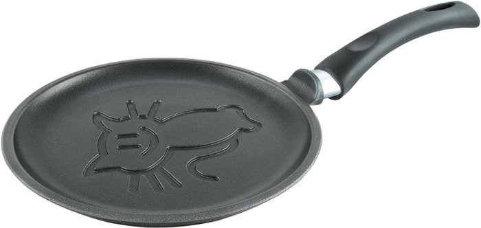 | Информация | Блинная сковорода имеет низкий борт и удобную ручку, благодаря чему легко переворачивать и снимать блины. Утолщенное дно обеспечивает особые термоаккумулирующие свойства: блин равномерно пропекается по всей толщине и красиво румянится с обеих сторон. Благодаря антипригарному покрытию блины всегда легко снимаются со сковороды и не пригорают, даже при выпекании без использования масла. Дизайн корпуса сковороды разработан так, чтобы при выпекании не нарушалась целостность блина, и красиво румянился рисунок. |