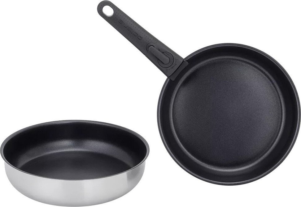 | Информация | EasyKeep-3DSS – просто готовить, удобно хранить! Набор посуды EasyKeep-3DSS идеально подходит для использования в духовке, позволяет сэкономить место при хранении, его удобно мыть. Посуда изготовлена из высококачественной нержавеющей стали. Эргономичная бакелитовая ручка с двойной защитой не нагревается и не скользит. Внутреннее высокопрочное антипригарное покрытие. Подходит для всех типов плит, включая индукцию. |