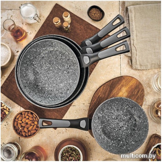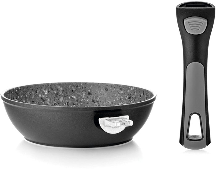 | Информация | Усиленное трехслойное антипригарное покрытие Whitford Quantum2 Granite служит в два раза дольше, чем другие виды покрытий; Пища в такой сковороде не пригорает, мыть поверхность легко и быстро; Ручка из бакелита с силиконом снимается и крепится одним движением. Это позволяет готовить в духовом шкафу и экономить место при хранении; Сковороды можно мыть в посудомоечной машине. |