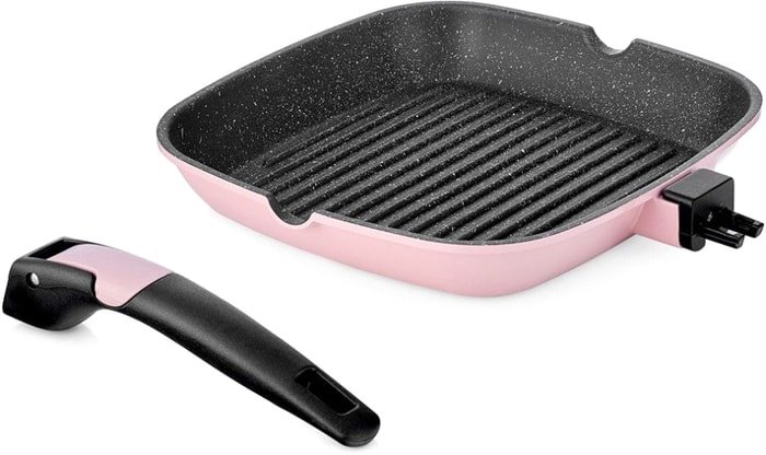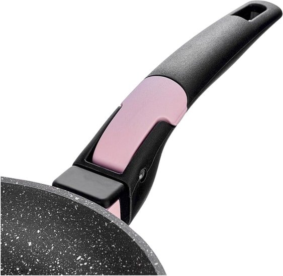 | Информация | Хорошей посуды много не бывает. А если это коллекция высококачественных сковород Easy Click из литого алюминия с прочным антипригарным покрытием, для нее всегда найдется место: благодаря эргономичной съемной ручке сковороды можно поставить одна в другую. Достоинства и преимуществаПрочное дно и корпус каждой сковороды не подвержены деформации и обеспечивают равномерный нагрев; Долговечное антипригарное покрытие повышенной износостойкости ILAG BASIC Marble не позволяет пище пригорать, делает мытьё быстрым и лёгким; Эргономичная съёмная бакелитовая ручка прочно крепится к корпусу сковороды. Она не нагревается и обеспечивает непревзойдённый комфорт и удобство во время приготовления; Съёмная ручка позволяет использовать сковороду в духовом шкафу, а также экономит место при хранении посуды. Коллекция Easy Click подходит для всех типов плит, в том числе индукционных. Сковороды можно мыть в посудомоечной машине. В линейку Easy Click входят сковороды разных диаметров и назначения: от небольших (20 см), позволяющих приготовить яичницу или разогреть обеда на одного человека, универсальных средних (22, 24 см), больших сковород на всю семью (диаметр – 26, 28 см). Есть здесь и плоская блинная сковорода, и квадратная сковорода-гриль с рифленым дном, и вместительный вок со съемной ручкой. Коллекцию дополняет ковш. И пусть вас не вводит в заблуждение нежно-розовый корпус: такая посуда поможет стать безусловным авторитетом на своей кухне. |