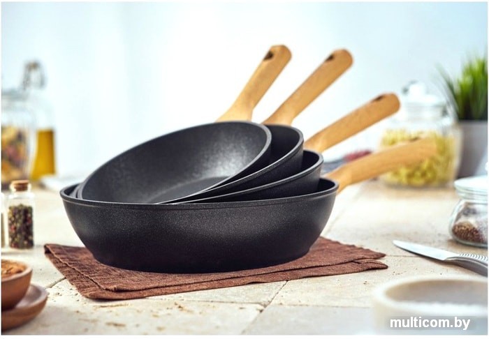 | Информация | Серия глубоких сковород Walmer York – нежная любовь и тех, кто умеет готовить, и тех, кто совершает первые шаги в этом направлении. Высокие бортики позволяют разогревать большие порции, не забрызгивая плиту, делать более сложные блюда. Светлая ручка из бакелита с покрытием soft-touch надежно удерживается в руке. А главное – такая сковорода совершенно универсальна и «дружит» со всеми плитами. Достоинства и преимуществаКорпус Walmer York выполнен из кованого алюминия: он прочен, экологичен и не деформируется в ходе применения; Индукционное дно со стальным диском подходит для всех видов плит; Толстое дно (3 мм) и стенки (2 мм) равномерно прогреваются, сохраняя вкус продуктов; Усиленное антипригарное покрытие Dyflon Rough Megastone coating с шершавым эффектом «под чугун» благодаря данной текстуре служит в два раза дольше обычного. Глубокая сковорода с диаметром 24 см и высотой бортиков 6 см – хорошее приобретение для семьи из двух человек: утренний омлет, картофель-фри на обед, пару стейков на ужин – всё получится идеально. С такими высокими бортиками можно смело браться за соусы и подливы, они не будут расплескиваться и в меру загустеют. В серию Walmer York, кроме того, входят: сковороды диаметром 20, 26 и 28 см, блинная сковорода, вок, ковш и кастрюля с крышкой. |