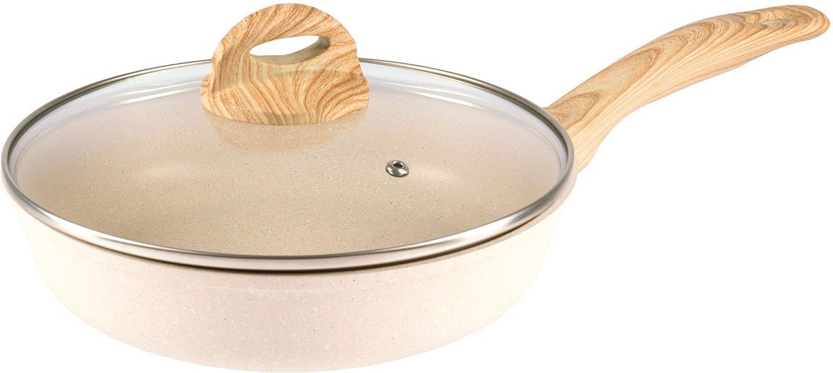 | Информация | - Сковорода Letizia в комплекте стеклянная крышка. - Сковорода из литого алюминия с антипригарным мраморным покрытием GMM Duraslate. - Ручки сковороды и крышки из бакелита. - Толщина дна 5 мм, толщина стенок 2.5 мм. - Можно использовать на газовых, стеклокерамических, электрических плитах. - Можно мыть в посудомоечной машине в режиме Eco при 50 °С. - Отличается надежностью и удобством при готовке. - Подходит для жарки, тушения и пассеровки. - Антипригарное покрытие GMM Duraslate предотвращает пригорание пищи. - Удобная ручка, не нагревается при готовке. - Крышка оснащена удобной ручкой и клапаном для выпуска пара. - Прозрачная крышка позволяет наблюдать за процессом готовки. - Корпус из литого алюминия сочетает легкость и прочность. - Рекомендуется для приготовления яичницы, мяса и других блюд. - Высокое качество и удобство использования. |