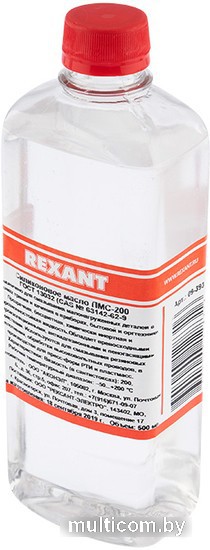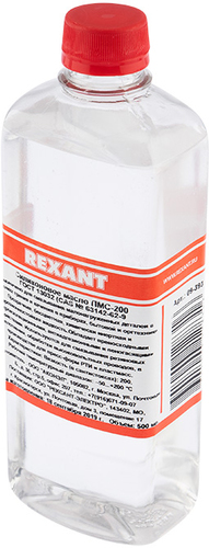 | Информация | ПолиМетилСилоксановая жидкость ПМС-200 (ГОСТ 13032-77) REXANT – бесцветная прозрачная химически инертная и коррозионностойкая силиконовая жидкость без запаха. В отличие от минеральных или синтетических масел, данная жидкость обладает превосходными электроизоляционными, антиадгезионными и пеногасящими свойствами. Область применения: Смазывание резиновых уплотнений и обработка высоковольтных проводов. Основа низкотемпературных и высокотемпературных: а) консистентных смазок, паст и вазелинов; б) моторных и трансмиссионных масел. В качестве разделительной (металл-пластик, пластик-резина и т.п.) и антиадгезионной смазки пресс-форм при формовании и экструдировании изделий из пластических материалов: а) при производстве резинотехнических и пластмассовых изделий, б) в шинной промышленности; в) для конвейерных лент; г) при производстве каучука; д) при производстве пластмассовых изделий. Жидкость для приборов и механизмов: а) охлаждающая; б) амортизационная; в) гидравлическая; г) демпфирующая; д) диэлектрическая; е) антиадгезионная; ж) разделительная. Как теплоноситель с диапазоном температур –100...+300 °C. Как добавка в политуры и различные средства бытовой химии в: а) полирующие составы и мастики; б) полирующие составы для мебели; в) полирующие составы для автомобилей; г) средства бытовой химии; д) косметические средства, основа кремов от загара, губной помады и прочее; е) составы по уходу за волосами; ж) составы по уходу за обувью, кожаных изделий; з) мастики для пола. Замасливатель для шерстяных полуфабрикатов в чесальном и ткацком производствах; Для силовых трансформаторов, выпрямителей, магнетронов и т.д., как охлаждающая и диэлектрическая жидкость (в т.ч. замена совтола-10). Как жидкость для повышения прочности и бездефектности при обработке стеклоизделий и стерилизации медицинских инструментов. Основа пеногасителей для: а) текстильной промышленности; б) буровых растворов нефтяной и газовой промышленности; в) для любых процессов и производств; г) пищевой промышленности (стабилизирующая, противопенная добавка Е900). В текстильной промышленности для смягчения тканей из хлопка и синтетики, придания техническим тканям свойств водоотталкивания и абразивной прочности. Для производства различных эмульсий и добавок при изготовлении красок, герметиков, защитных и полирующих покрытий, клеев и т. д. Таким образом, области применения силиконовых жидкостей постоянно расширяются благодаря улучшению технологии производства и уменьшении стоимости ее производства. Основные свойства: Жидкости ПМС стойки к высоким и низким температурам, не образуют остатков на обрабатываемых поверхностях, предотвращают прилипание термопластичных материалов друг к другу. Стабильность физических свойств жидкостей ПМС в широком диапазоне рабочих температур, –40...+200 °С. Отличные характеристики вязкости/температуры, высокая сжимаемость и сопротивление сдвигу; Жидкости ПМС придают отличные свойства скольжения и гидрофобности пластмассам и резинам, уменьшают трение поверхностей. Электрические характеристики жидкостей ПМС практически неизменны при высоких и низких температурах в широком диапазоне частот. Образуют гидрофобную защитную пленку. Стойкость к радиации. Низкое поверхностное натяжение, сильные гидрофобные свойства. Температура застыван