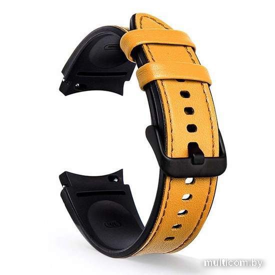 | Информация | Гибридный ремешок Rumi Comfort для умных часов Samsung Galaxy Watch4, Watch5, Watch6 горчичного цвета с черной силиконовой подкладкой. Этот ремешок изготовлен с учетом дополнительной проработки эстетических качеств и удобства использования, может дать как классические, так и спортивные впечатления в зависимости от потребностей и условий использования. |