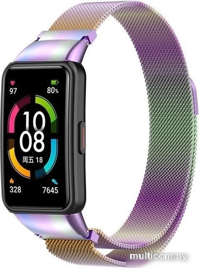 | Информация | Классический металлический браслет с плетением в "миланском" стиле. Легко регулируется с помощью магнитной застёжки, подойдет как на женскую так и на мужскую руку. Легко устанавливается на фитнес-часы Huawei Band 6 или Honor Band 6 без инструментов и надёжно сидит на руке. |