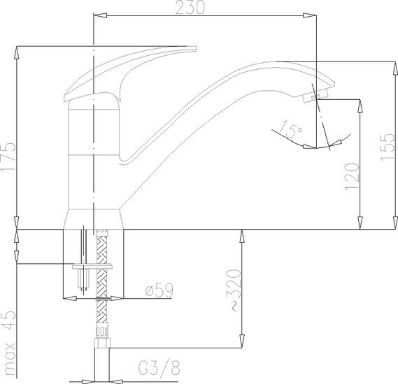 | Длина (вылет) излива | 230 мм |