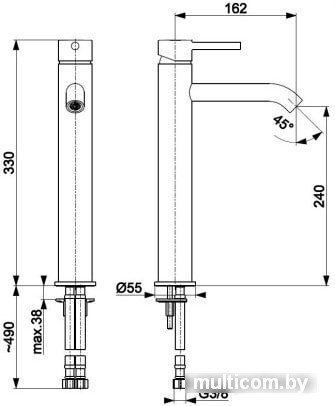 | Длина (вылет) излива | 162 мм |