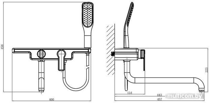 | Длина (вылет) излива | 443 мм |