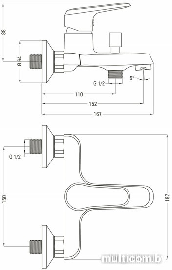 | Длина (вылет) излива | 152 мм |
