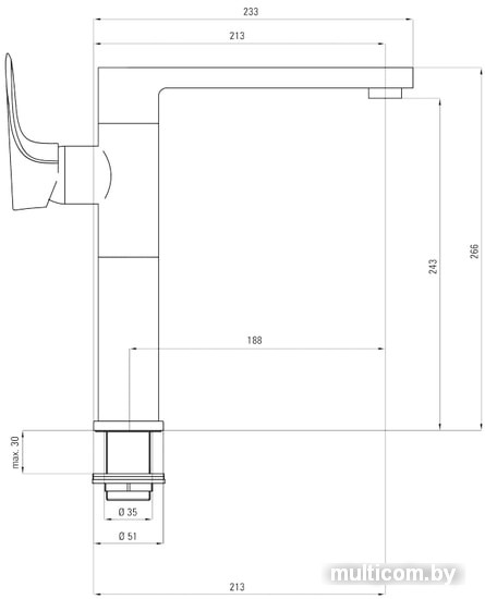 | Длина (вылет) излива | 213 мм |