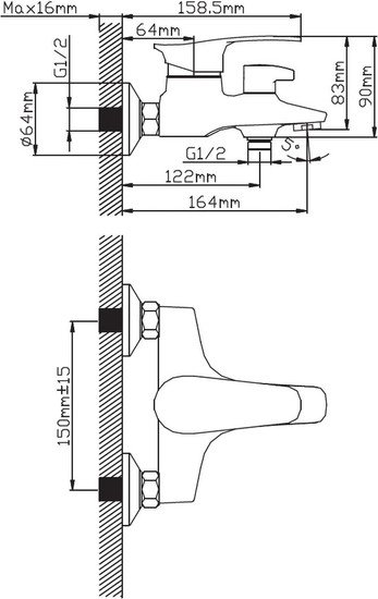 | Длина (вылет) излива | 164 мм |