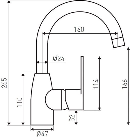 | Длина (вылет) излива | 160 мм |
