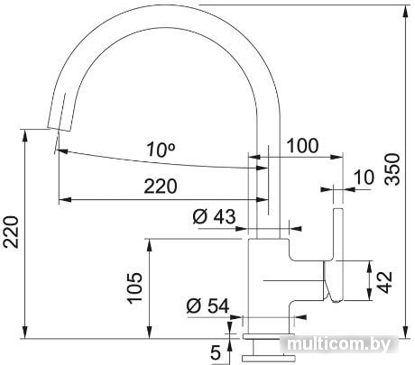 | Длина (вылет) излива | 220 мм |