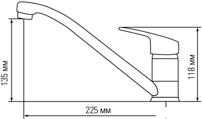| Длина (вылет) излива | 225 мм |