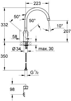 | Длина (вылет) излива | 223 мм |