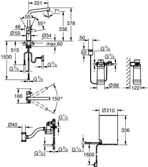 | Поворотный излив | Да 150 ° |