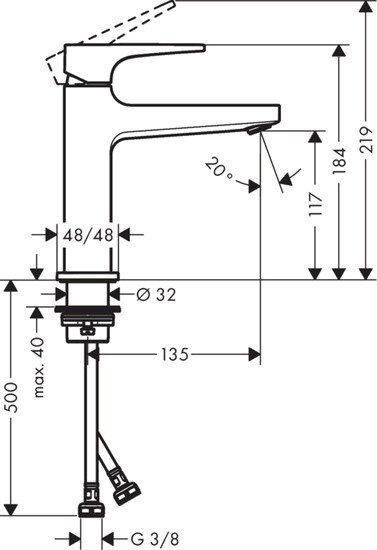| Длина (вылет) излива | 135 мм |