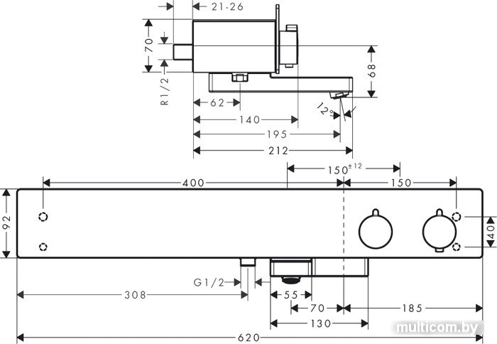 | Информация | · расход воды изливом на ванны при 3 барах: 20 л/мин· расход воды ручным душем при 3 барах: 14 л/мин· картридж термостата, запорный ипереключающий вентиль· предохранительный ограничитель при 40°C· регулируемое ограничение температуры· с изолированной подачей воды· клапан обратного тока воды· с шумопоглотителем· материал рукояток: металл· поверхность полочки: анодированный алюминий· грязеулавливающий фильтр входит в комплект поставки |