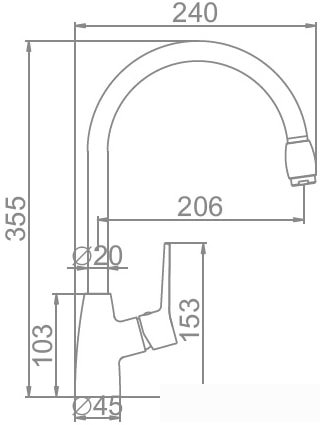 | Длина (вылет) излива | 206 мм |