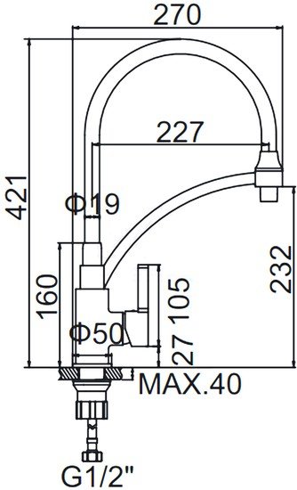 | Длина (вылет) излива | 227 мм |