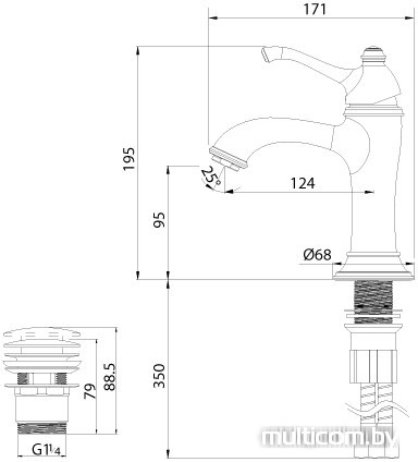 | Сливной гарнитур (донный клапан) | Да (клик-клак) |
