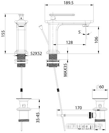 | Длина (вылет) излива | 128 мм |
