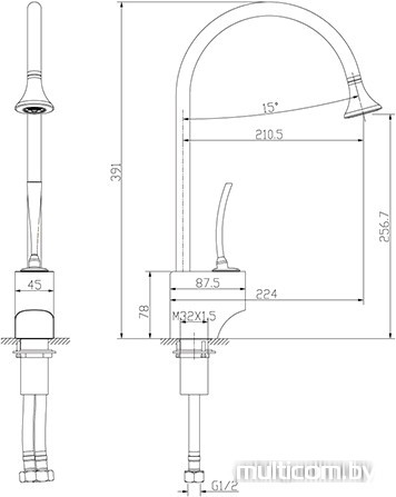 | Высота излива | 256 мм |
