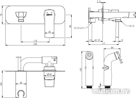 | Лейка для биде | Да (душевой шланг 1.2 м) |