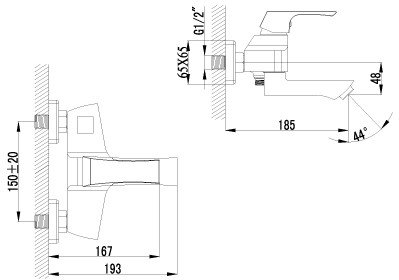 | Длина (вылет) излива | 185 мм |