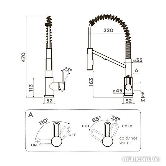 | Выдвижной/гибкий излив | Да аэратор+лейка |
