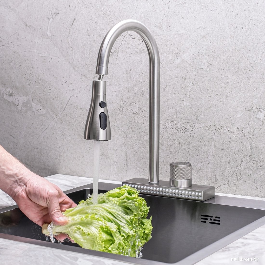 | Информация | - Современный и стильный смеситель для кухни из нержавеющей стали, который оснащен высоким поворотным изливом и выдвижной насадкой с двумя режимами подачи воды. Он идеально подходит для деликатного мытья овощей и фруктов. - Этот смеситель с поворотным изливом и душем станет незаменимым помощником на вашей кухне, позволяя легко мыть зелень, грибы, фрукты и овощи. - Приобретение водосберегающего смесителя — это не только выгодное, но и практичное решение. С ним вы сможете значительно сократить расходы на воду. - С помощью этого смесителя вы сможете снизить расход воды до 50%, что делает его отличным выбором для экономии. - Смеситель преобразует воду на выходе в воздушно-водную смесь, при этом сохраняя диаметр струи и силу напора. - Он состоит из поворотного излива, выдвижной насадки с двумя режимами подачи воды (струя и душ) и нижнего блока — душа для фруктов и овощей. Этот блок оснащен десятками микрофорсунок, создающих мягкий поток, который бережно обволакивает продукты. - Под нижним душем удобно мыть руки, ополаскивать бокалы и столовые приборы, так как он не создает брызг. Вода, попадая на овощи под плоским углом, эффективно смывает все загрязнения благодаря микроскопическим струям. Насладитесь удобством работы в зоне мойки и бережным расходом воды! |