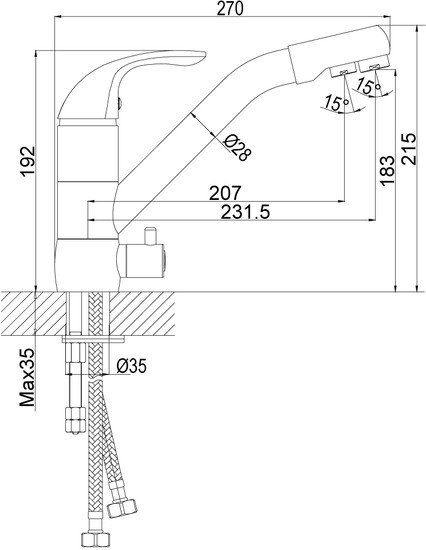 | Длина (вылет) излива | 231.5 мм |