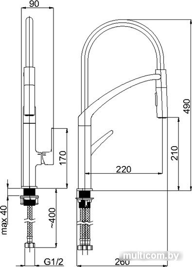 | Выдвижной излив | Да с аэратором (гибкий шланг) |