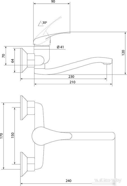 | Длина (вылет) излива | 230 — 230 мм |