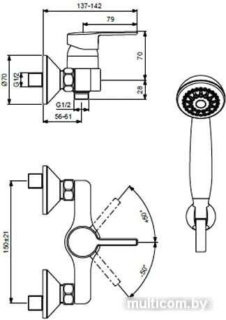 | Длина (вылет) излива | 56 — 61 мм |